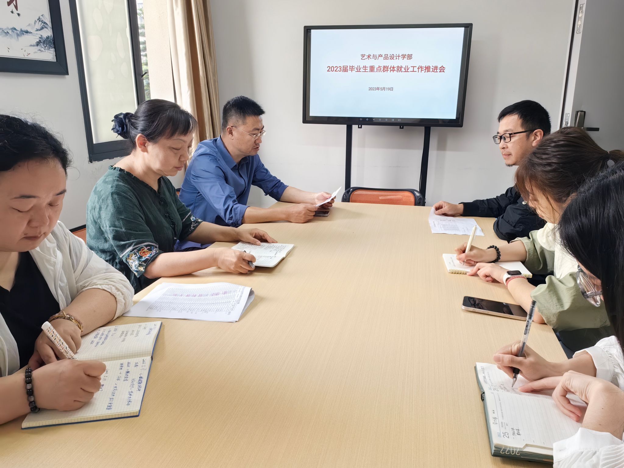 5月19日上午,艺产学部在B区行政楼201召开2023届毕业生重点群体就业工作推进会。会议由党总支书记文华主持。艺产学部党政领导及2023届毕业生辅导员参加了此次会议。