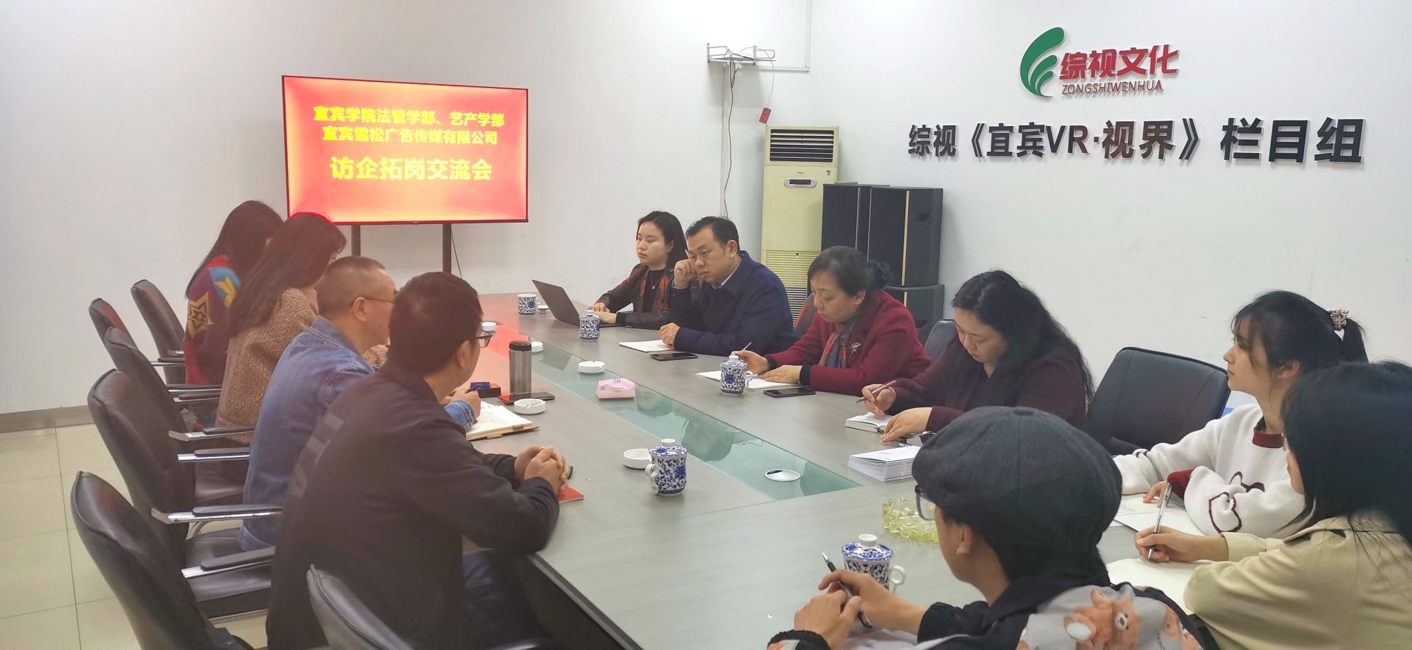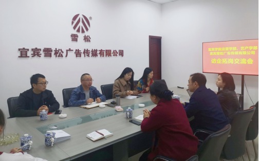 为深入贯彻习近平总书记来校视察重要讲话精神,推进高校访企拓岗专项行动,全面提升人才培养质量,3月25日艺产学部前往宜宾雪松广告传媒有限公司开展访企拓岗。宜宾雪松广告传媒有限公司总经理吴宗泉、副总经理钟敏、宜宾艺产学部党总支副书记罗蓉、副部长刘炜等参加了此次座谈会。