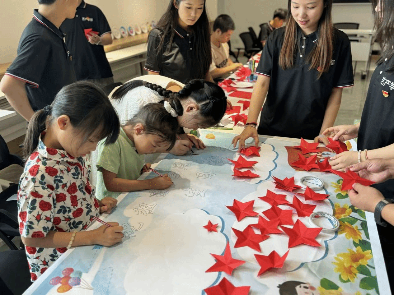 服务团开展了多姿多彩的教育关爱活动。成员巧妙地运用扎染、盘子绘画等形式,灵动地将课堂深入到安石村。围绕建国中华人民共和国成立75周年这一重大主题,积极组织孩子们共同参与绘画创作。孩子们不仅沉醉于美的熏陶,还在志愿者的悉心指引下,熟练掌握了基本的绘画技巧,创作出了属于自己的充满奇思妙想的作品。