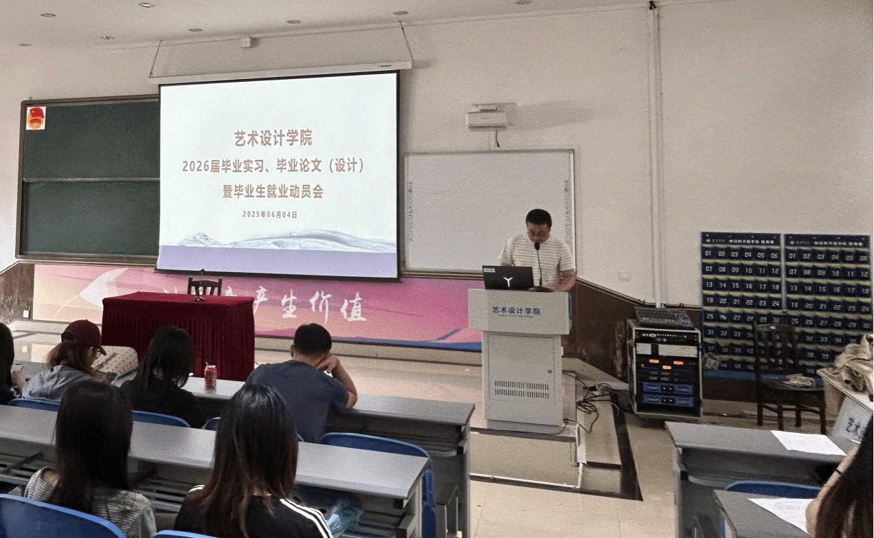 2025年6月4日下午14:30,艺术设计学院在B区学术报告厅、四教楼202分批召开2026届毕业实习、毕业论文(设计)暨毕业生就业动员大会。艺术设计学院领导、各专业教研室主任、教学办公室全体工作人员、2026届毕业实习指导教师、毕业班级专(兼)职辅导员及2026届全体学生参加此次会议。