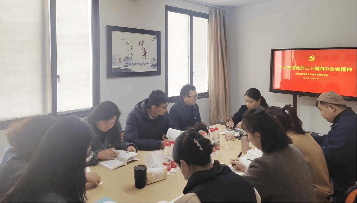 为深入学习贯彻党的二十届四中全会精神,根据统一部署,11月27日上午,艺术设计学院党委在江北校区(B)行政楼201会议室组织党的二十届四中全会精神集中自学。学院处科级干部、党支部书记参加学习。