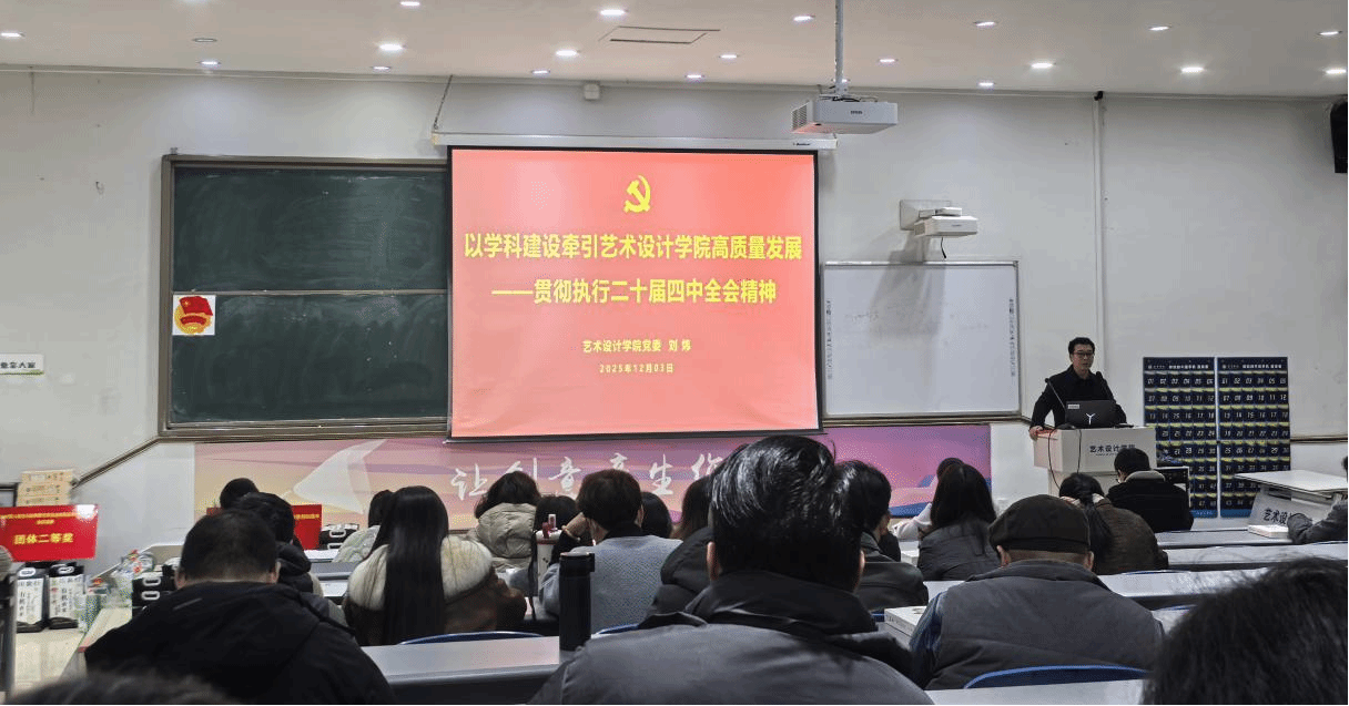 12月3日,艺术设计学院院长刘炜以“以学科建设牵引艺术设计学院高质量发展——贯彻执行二十届四中全会精神”为题,为全院教职工讲授专题党课。党课围绕政策背景、学科专业内涵、硕士点建设等核心内容展开,旨在深入解读国家高等教育发展战略,明确学院发展路径。