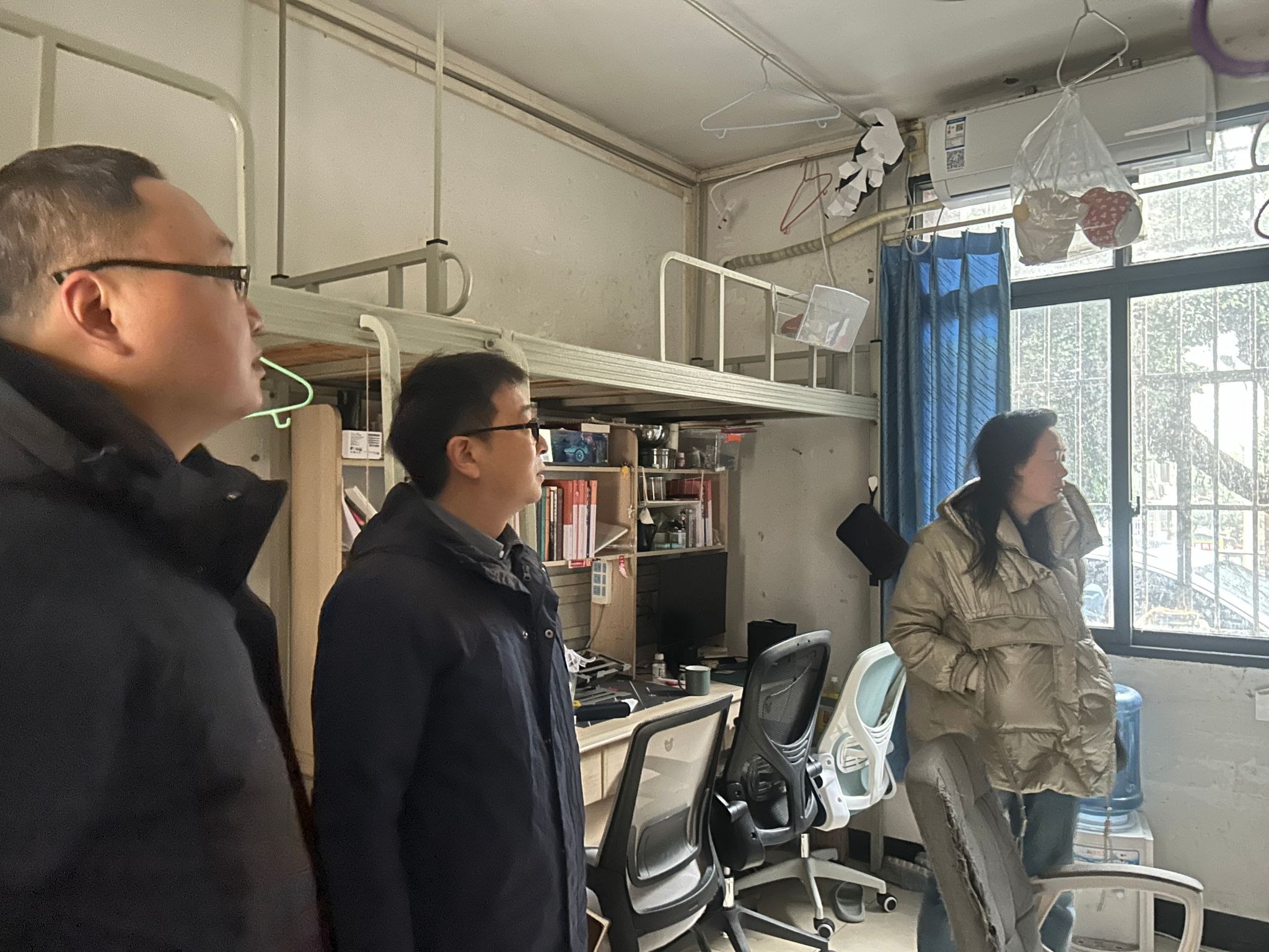 会后,学院领导率检查组实地走访教学楼、工作室、学生宿舍及校内施工区域。在教室与工作室,检查组重点查看教学设备运行、消防安全及环境卫生,要求相关部门做好维护调试,确保“开学第一课”顺畅进行;在宿舍区,领导们细致检查水电设施、床位安全,叮嘱加强日常巡查,营造舒适生活空间;针对校内施工场地,检查组强调要严守安全规范,保障师生校园安全。刘炜指出:“安全是校园运行的底线,须以‘零容忍’态度排查隐患,为师生提供全方位保障。”