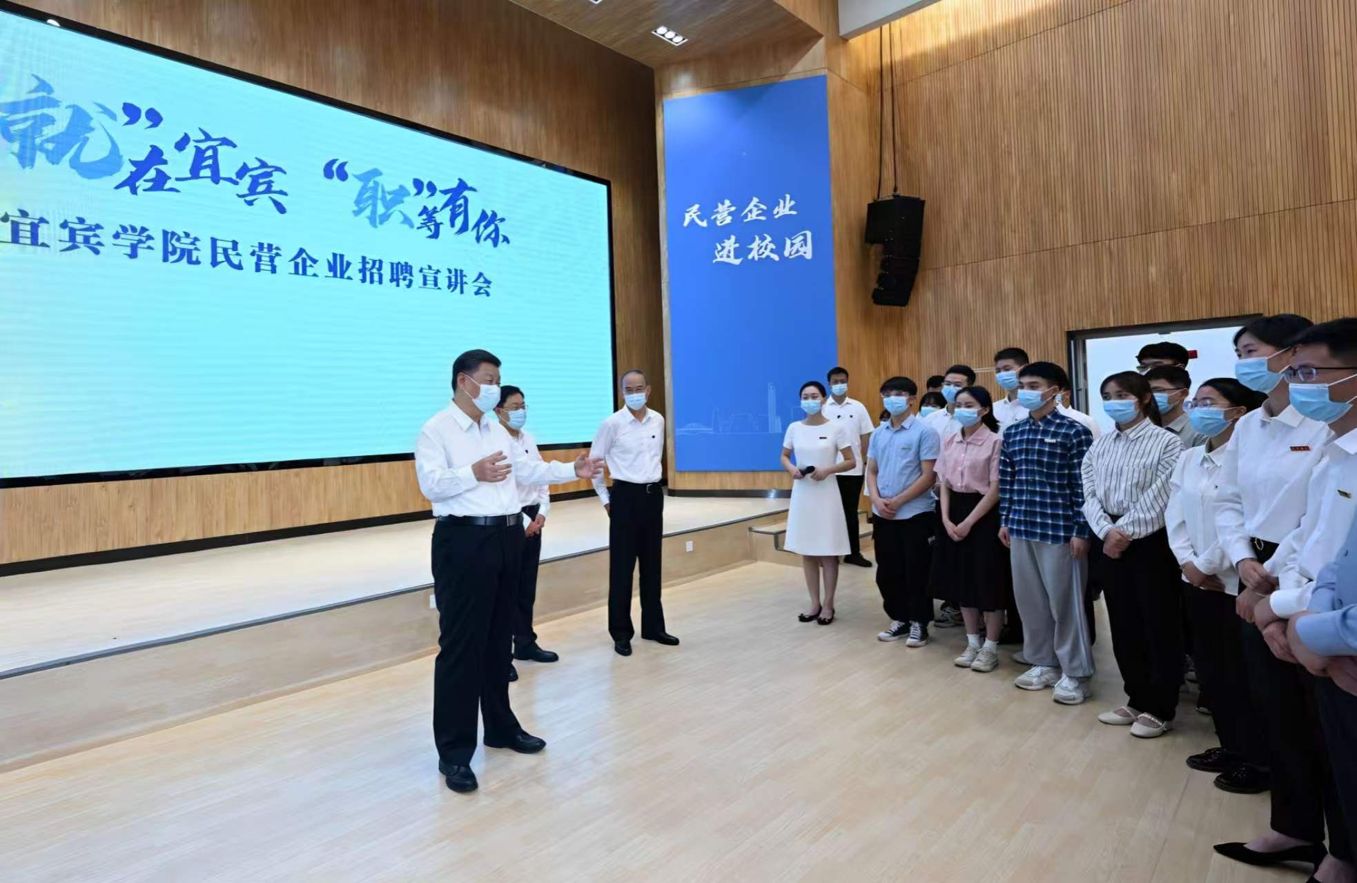 今年我国高校毕业生预计达1076万人,同比增加167万人,创历史新高。中共中央总书记、国家主席、中央军委主席习近平十分关心高校毕业生就业情况,6月8日,习近平总书记来到宜宾学院考察调研,察看毕业生创新创业代表作品展示,了解学校开展就业创业指导服务工作。学校招聘大厅内,正在举行企业招聘宣讲会,习近平向教师、学生、企业负责人了解企业招工的需求和毕业生签约率等情况。习近平强调,党中央高度重视高校毕业生就业,采取了一系列政策措施。当前正是高校毕业生就业的关键阶段,要进一步挖掘岗位资源,做实做细就业指导服务,学校、企业和有关部门要抓好学生就业签约落实工作,尤其要把脱贫家庭、低保家庭、零就业家庭以及有残疾的、较长时间未就业的高校毕业生作为重点帮扶对象。习近平对同学们说,幸福生活是靠劳动创造的,大家要保持平实之心,客观看待个人条件和社会需求,从实际出发选择职业和工作岗位,热爱劳动,脚踏实地,在实践中一步步成长起来。他勉励同学们自觉践行社会主义核心价值观,努力做到德智体美劳全面发展。