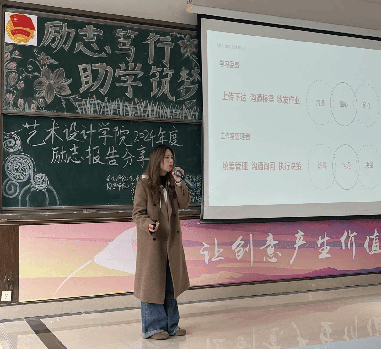 为贯彻习近平总书记关于教育的重要论述,落实立德树人根本任务,发挥朋辈引领作用,切实提升资助育人成效,12月3日,艺术设计学院在B区学术报告厅举行了2024年“励志笃行 助学筑梦”励志报告分享会。艺术设计学院全体专兼职辅导员与部分学生代表参会。