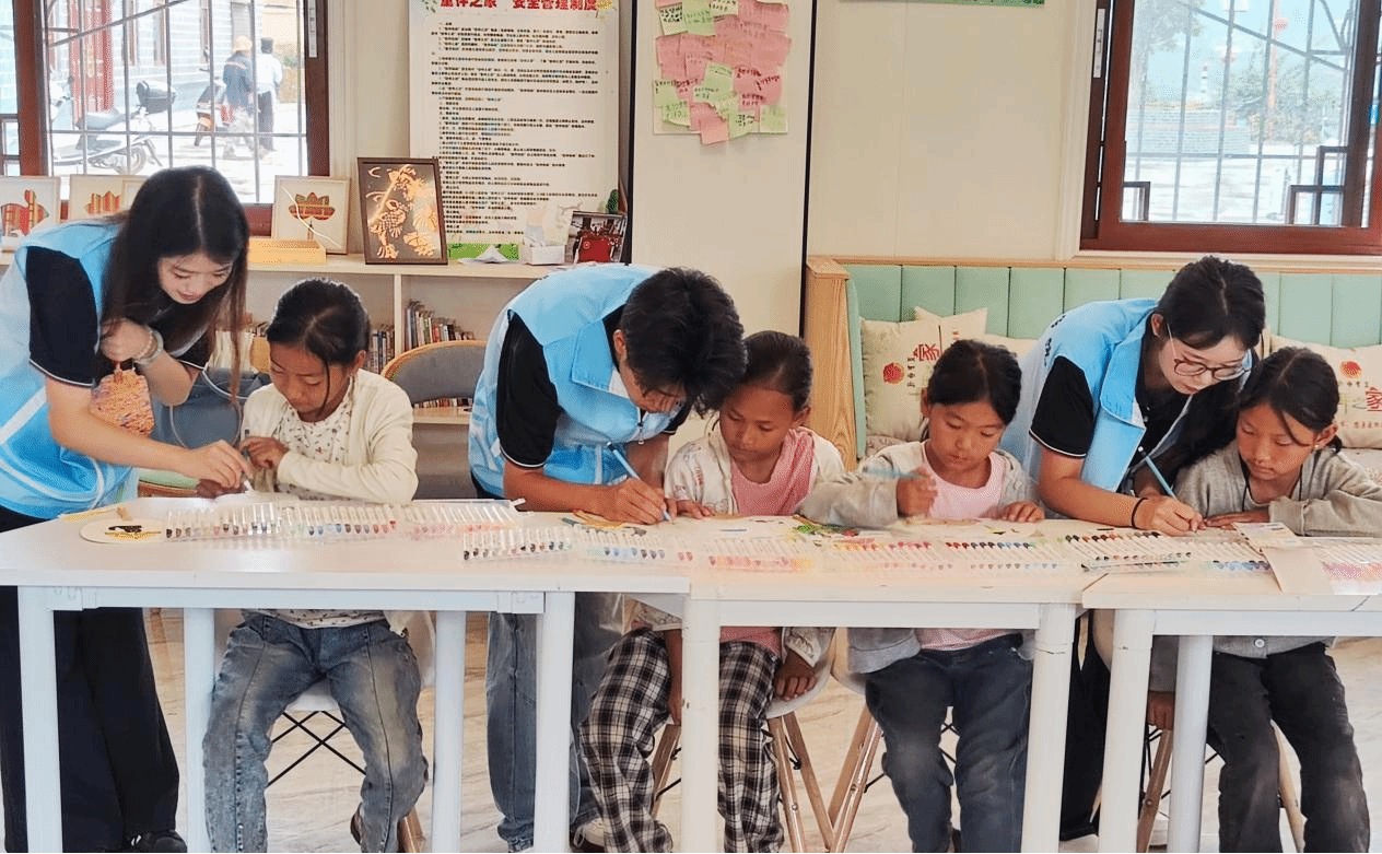 在普格县红军树村童伴之家,“高校资源+在地需求”的精准对接打造的“童画新家园”课堂,以团扇绘制为纽带,将非遗技艺传承与创造力培养巧妙融合,用生动活泼的方式激发孩子们的学习兴趣与创造力,引导孩子们绘出心中世界。当传统团扇成为孩子们表达自我的“画布”,当非遗技艺与童真创意碰撞出火花,既让非遗传承在少年儿童心中扎下根脉,也让艺术的光芒照亮了他们的成长之路,更让“高校资源”真正转化为滋养在地儿童成长的养分。