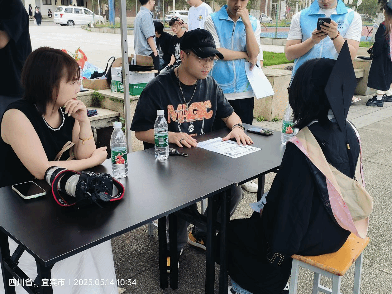 本次双选会精准聚焦设计行业核心领域,定向邀约平面设计与环境设计相关领域企业,提供品牌设计专员、室内设计师、视频号推广、设计师助理及新媒体运营等高度契合学生技能的岗位,通过‘专业—产业’深度匹配,为毕业生搭建起‘所学即所用’的优质就业通道。活动现场,身着学士服的毕业生们成为一道独特的风景线。他们手持简历,自信从容地与用人单位交流,在校园标志性建筑前拍摄的毕业照中,既有对校园生活的留恋,也饱含对未来的憧憬。