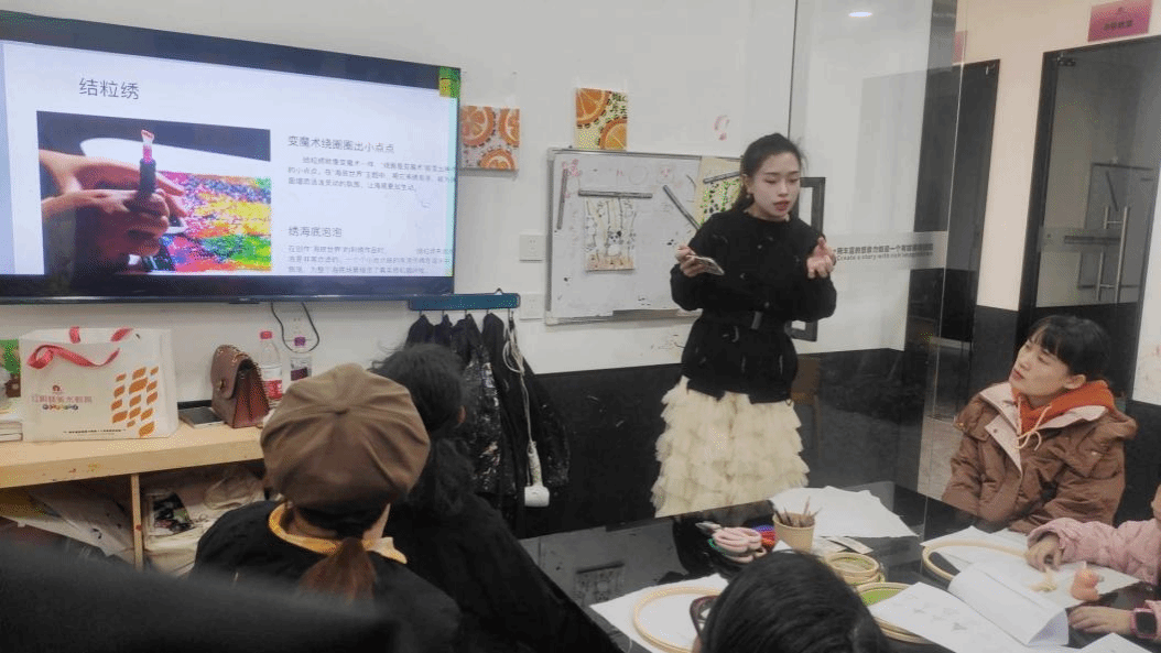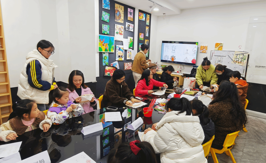 活动开始,教学负责人王沙老师通过生动的影像资料与实物展示,系统讲解了非遗刺绣的历史脉络、地域特色与文化寓意,引导参与者感受针线之间蕴含的审美与传统智慧。在实践环节中,教师团队逐步示范绘画构图与刺绣技法相结合的方法,指导每个家庭从主题构思到绘制线稿,再到选用丝线进行刺绣点缀,完成从平面绘画到立体手工艺的创作跨越。活动过程中,亲子之间的互动协作增强了情感联结,也让传统手艺在家庭场景中自然传承。