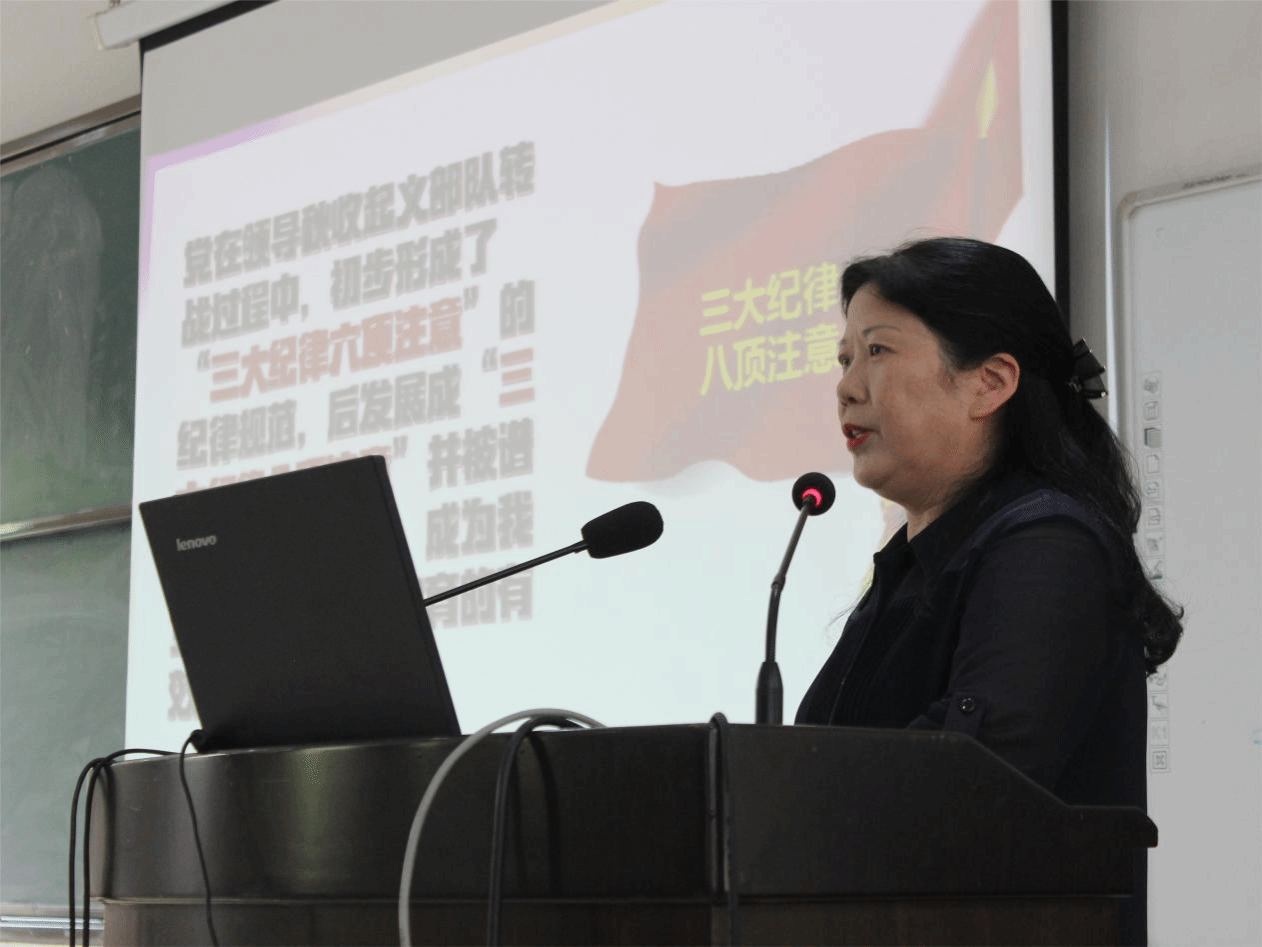 江教授还强调了“学纪、知纪、明纪、守纪”的重要性。她要求师生们不仅要学习党纪规定,更要深入理解其精神实质和内涵要求;在知纪的基础上,要能够明确纪律的边界和底线,做到心中有纪、行动有规;最终要落实到守纪上,自觉遵守党的纪律和规矩。
