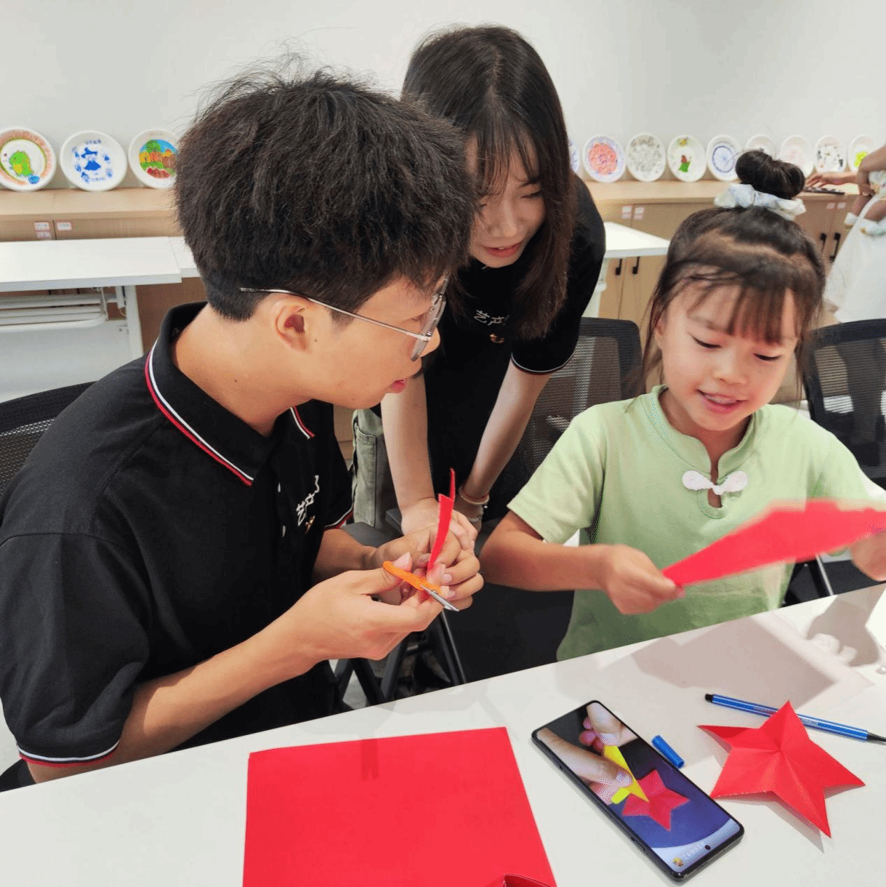服务团开展了多姿多彩的教育关爱活动。成员巧妙地运用扎染、盘子绘画等形式,灵动地将课堂深入到安石村。围绕建国中华人民共和国成立75周年这一重大主题,积极组织孩子们共同参与绘画创作。孩子们不仅沉醉于美的熏陶,还在志愿者的悉心指引下,熟练掌握了基本的绘画技巧,创作出了属于自己的充满奇思妙想的作品。