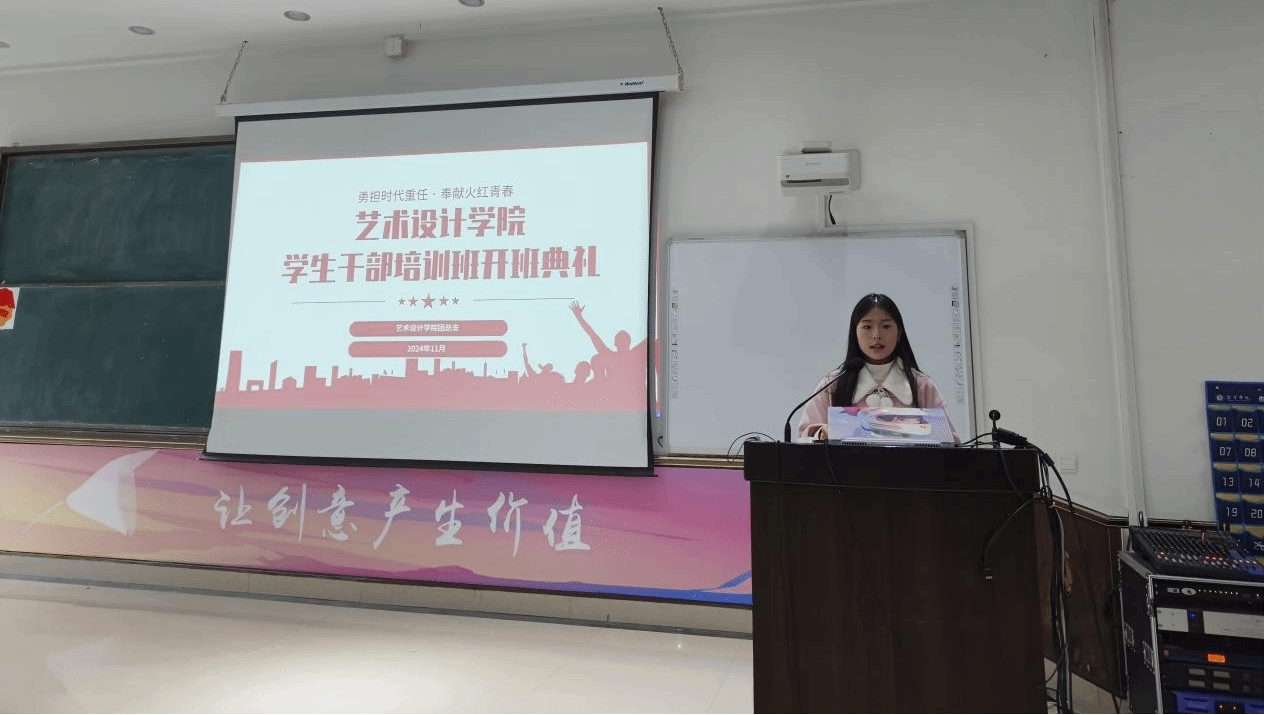 为明确学生干部的身份与责任,激励他们更好地发挥模范带头作用,提升服务意识和工作能力,促进学校管理和学生自我发展。11月10日,艺术设计学院在B区学术报告厅举行了2024年学生干部培训班开班典礼。团总支学生会各学生干部、22-24级班委参加。典礼由学办潘琳莉老师主持。
