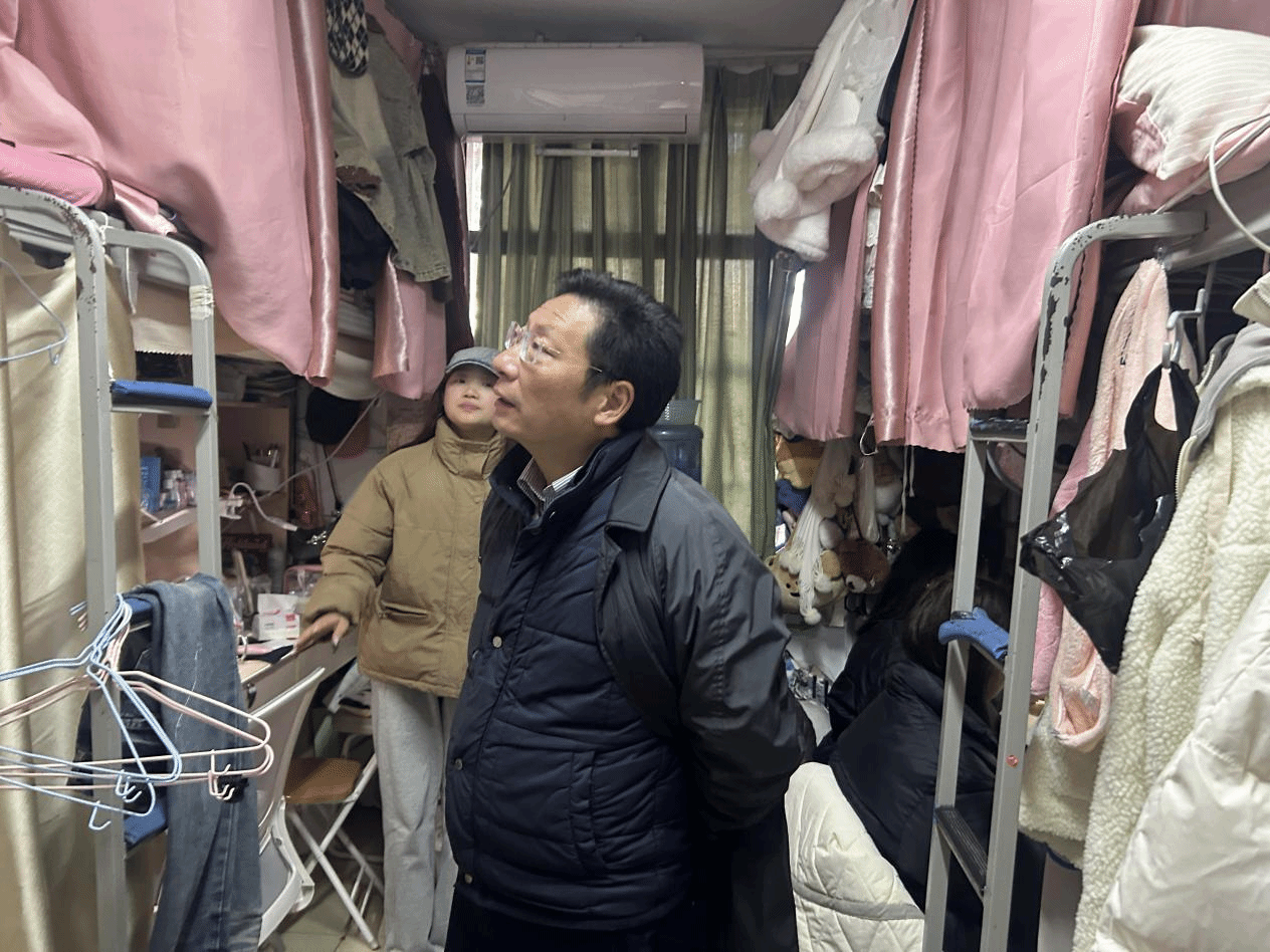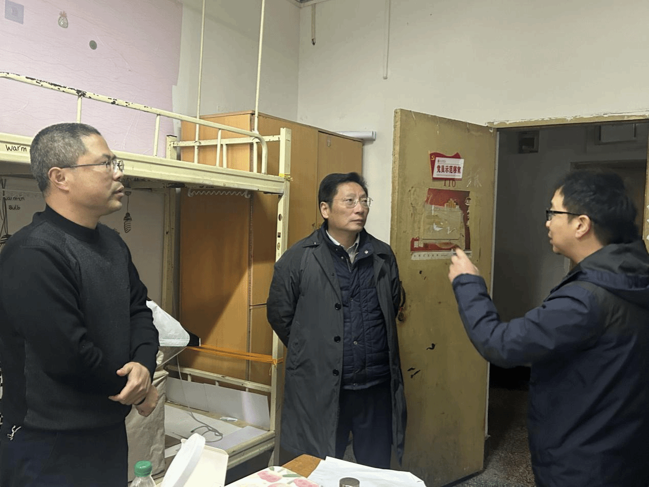 马洪江一行到学生宿舍认真查看内部环境,仔细询问学生的生活起居情况,对宿舍的基础设施、卫生状况、住宿安排等细节逐一了解。他强调,学生宿舍是学生在校期间的重要生活场所,要切实保障宿舍的安全、整洁与舒适,为学生创造良好的生活环境,让学生能够安心学习、舒心生活。