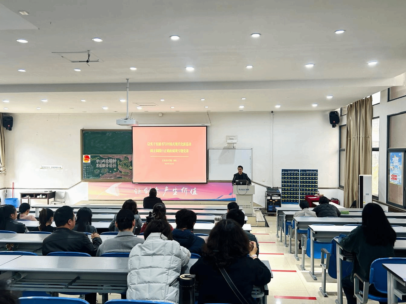 3月25日,艺术设计学院院长刘炜以《以实干实绩书写中国式现代化新篇章》为题,为全院教职工讲授树立和践行正确政绩观学习教育专题党课。