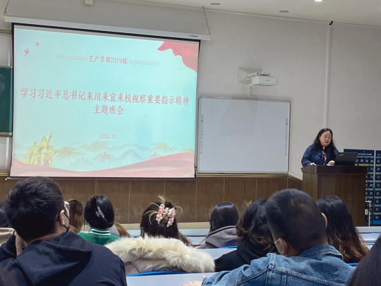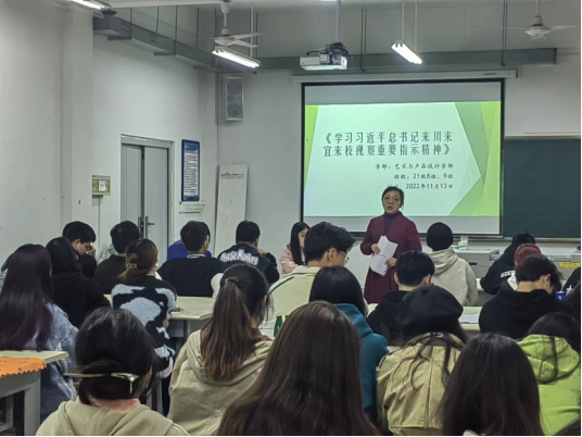 为深入贯彻落实习近平总书记来川来宜来校视察重要指示精神,深刻体会习近平总书记对宜宾学院的关心厚爱,深刻认识习近平总书记重要指示精神的丰富内涵和核心要义。2022年11月13日,艺术与产品设计学部各班开展了《重温习近平总书记来川来宜来校视察重要指示精神》主题班会。本次主题班会围绕习近平总书记考察调研宜宾学院重要指示精神,从三个方面展开:要坚决贯彻党中央决策部署,弘扬伟大建党精神,坚持稳中求进工作总基调,完整、准确、全面贯彻新发展理念,推动治蜀兴川再上新台阶;要加强现代农业科技推广应用和技术培训,积极发展绿色农业、生态农业、高效农业;高校毕业生就业要进一步挖掘岗位资源,做实做细就业指导服务。